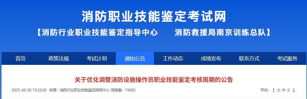 • 关于优化调整消防设施操作员职业技能鉴定考核周期的公告 2025-07-04